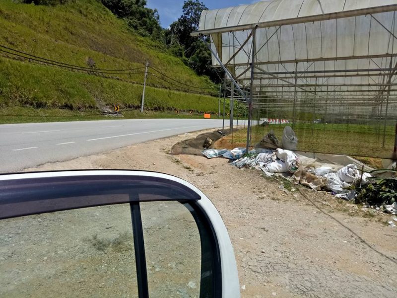 Ini kami dah berhentikan kereta di tepi jalan utama. Nak masuk kena jalan kaki melalui jalan ladang.